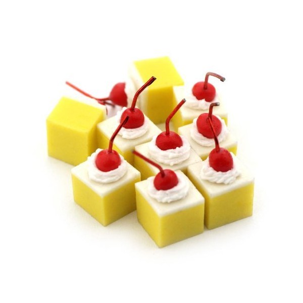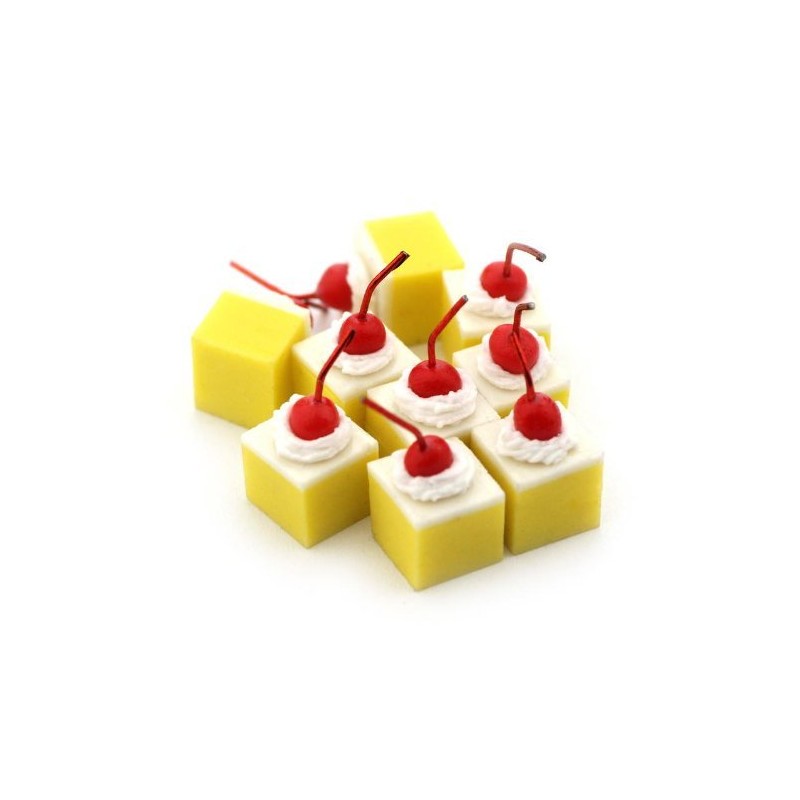 MyTinyWorld 7 x Dolls House Miniature Large Lemon Sponge Square With A Cherrys