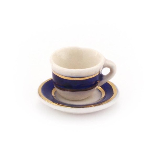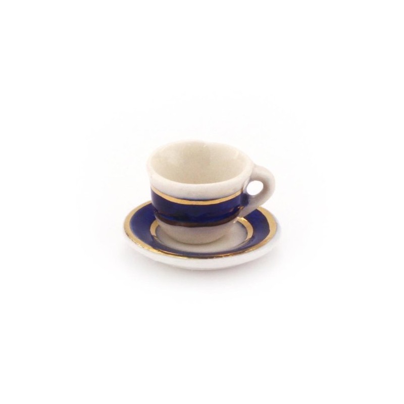 MyTinyWorld Dolls House Miniature Blue and Metallic Gold Coffee Cup and Saucer