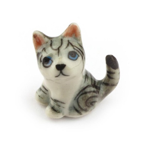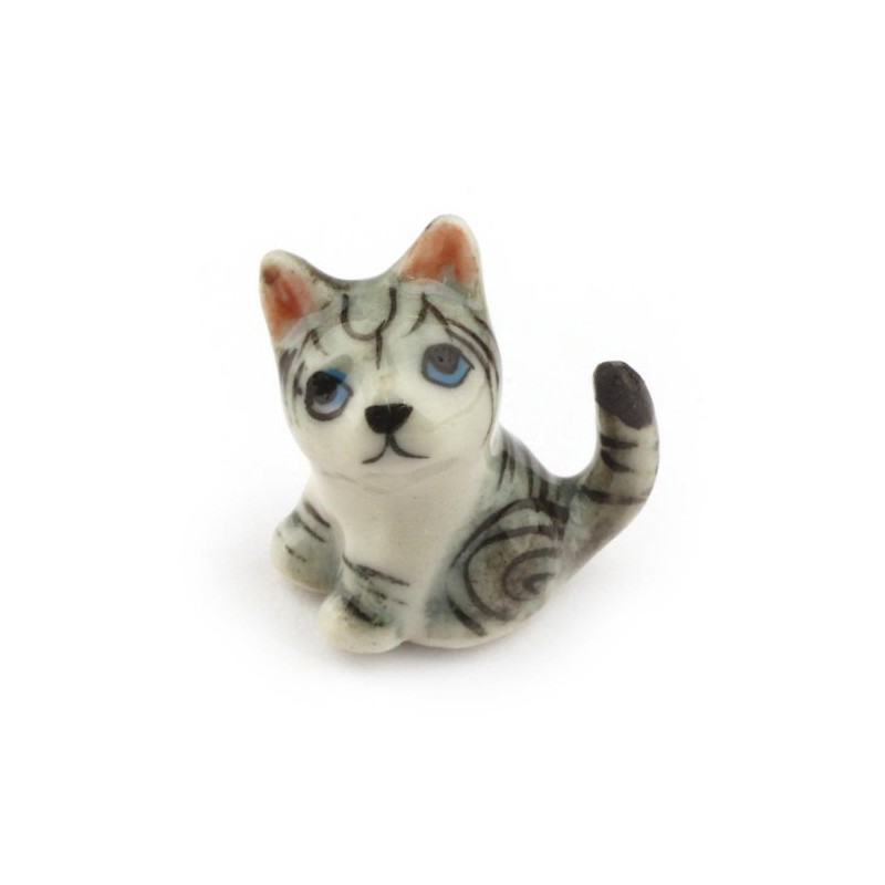 MyTinyWorld Dolls House Miniature Ceramic Grey Tabby Cat