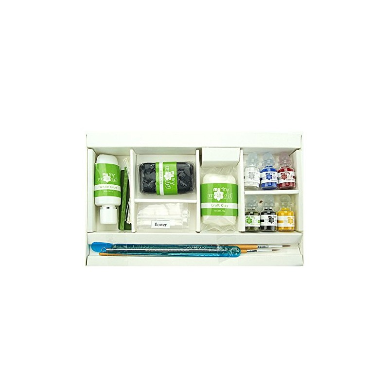 Included in each kit is an A3 step by step instruction sheet with clear, large pictures, 25g of air dried clay, 6 bottles of powder to colour the clay, two brushes, one metal shaping tool, a pack of base clay, a tube of glue, wire stems, pollen, stamens and green binding tape.