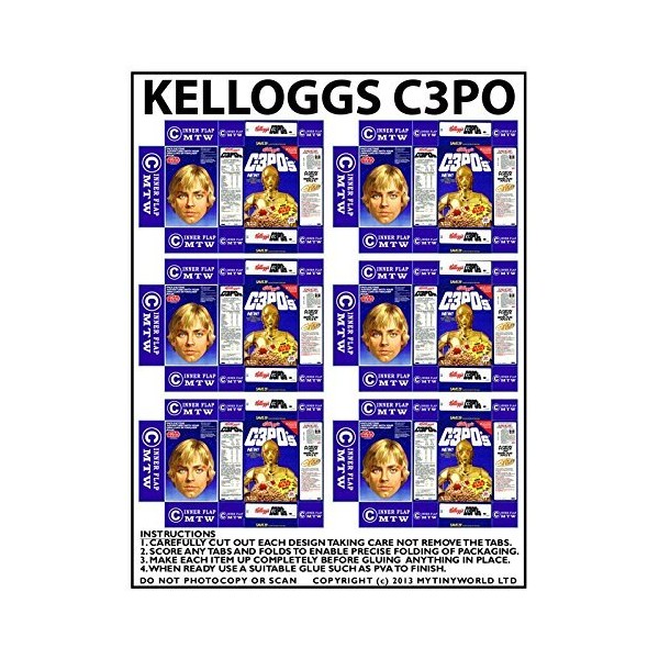 MyTinyWorld Dolls House Miniature Packaging Sheet of 6 Kelloggs C3POs