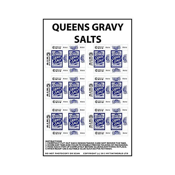 MyTinyWorld Dolls House Miniature Packaging Sheet of 6 Queens Gravy Salts