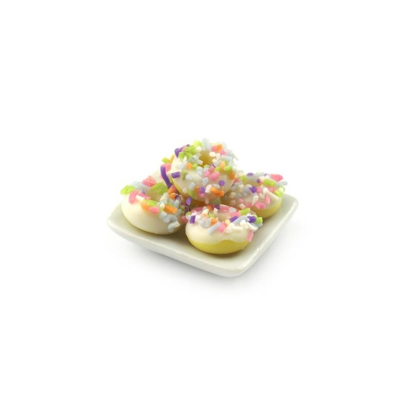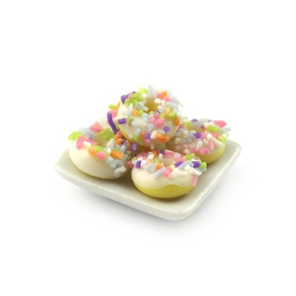 MyTinyWorld Dolls House Miniature White Iced Donuts With Sprinkles