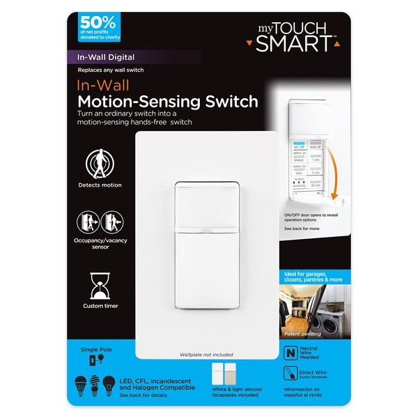 - Single-Pole Installation – Space-saving screw terminals allow easy single-pole installation (neutral wire required) while the included white and light almond doors match existing switches, conceal buttons and LED indicators, and serve as manual ON/OFF button