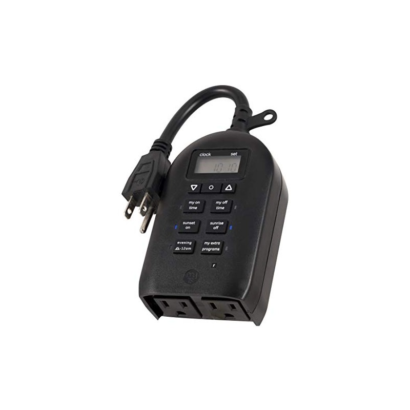 - Features two (2) heavy duty grounded outlet, a digital display, and blue LED indicator lights next to each button to show active programs. Compatible with LED, CFL, Incandescent and Halogen bulbs, also works with dimmable LED and CFL bulbs.