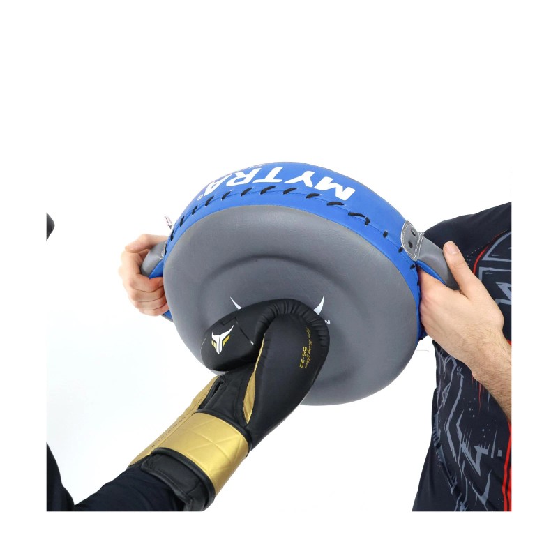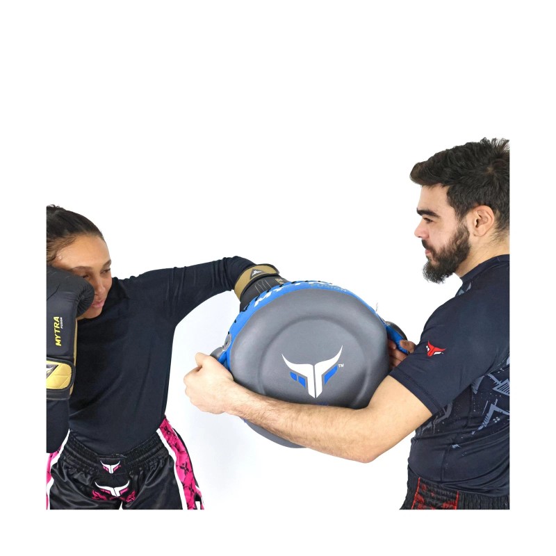 - ERGONOMIC ROUND DESIGN & SECURE GRIP Mytra Fusion round martial arts pad is equipped with reinforced handles that provide a firm and secure grip, making it easy to adjust for different positions during various training exercises. Additionally, the round shape of the training pads enhances focus, accuracy, speed, and striking power during training and sparring sessions.