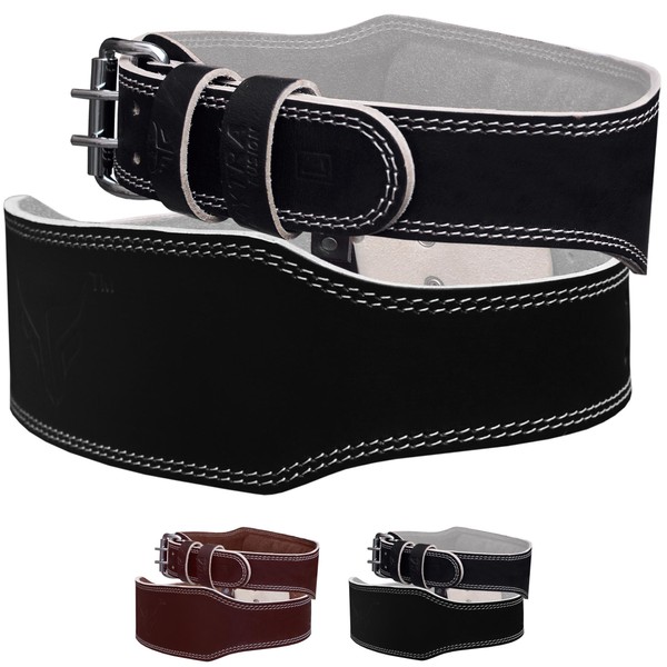Mytra Fusion Weight Lifting Belt Leather Fitness Training Back Support 4" Wider (Black, Medium)