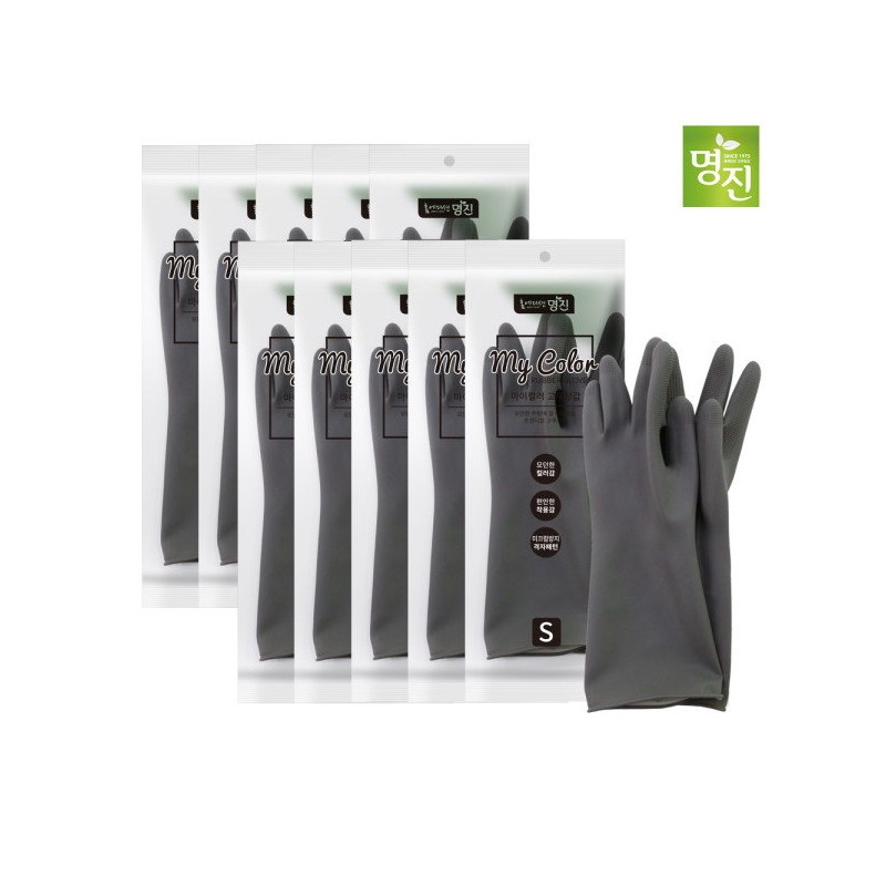 Myungjin Modern Gray Rubber Gloves Set of 10 (Small, Medium, Large), 03. My C...