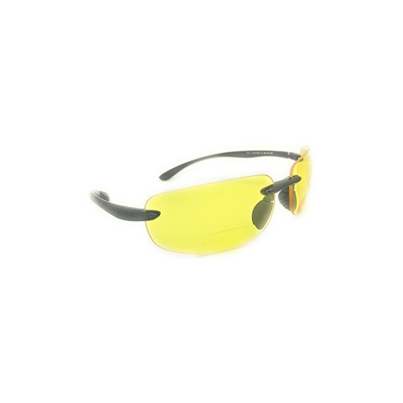 MyUV Sun Readers Rimless Maui Wrap Polarized or Non-polarized Lightweight TR90 Frame Bifocal Sunglasses (Black Frame/Night Driving Yellow Lens, 1.5)