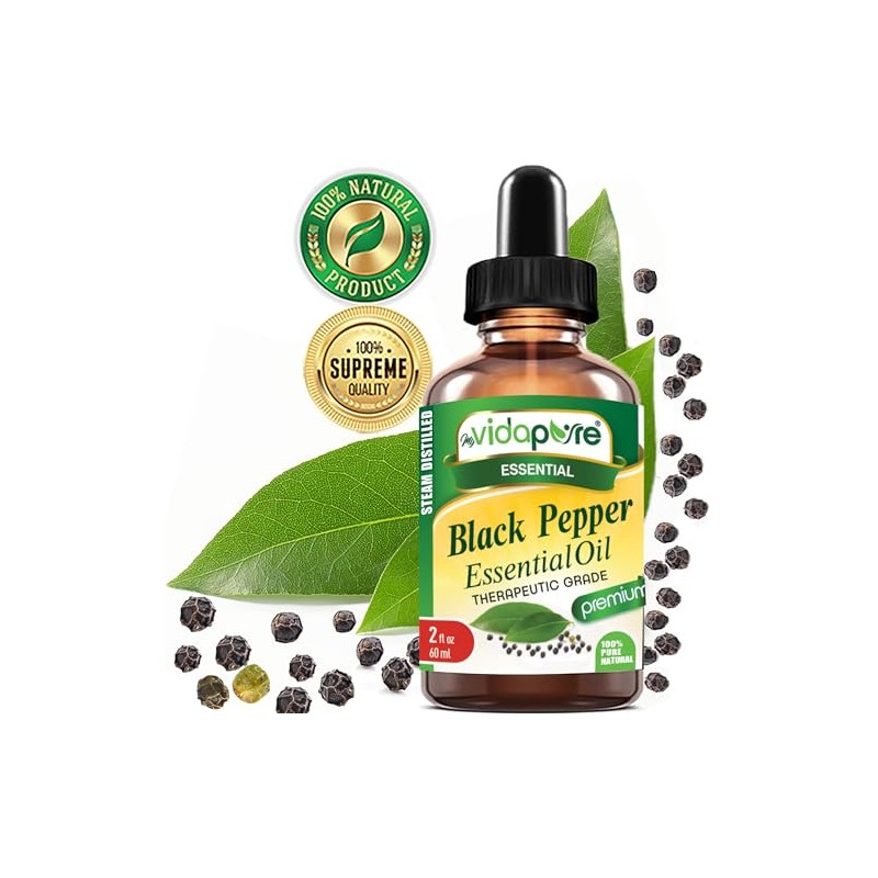 - myVidaPure BLACK PEPPER ESSENTIAL OIL Piper Nigrum is 100 % PURE THERAPEUTIC GRADE ESSENTIAL OIL. COLD PRESSED. No fillers, additives or carriers added, vegan, and cruelty-free.