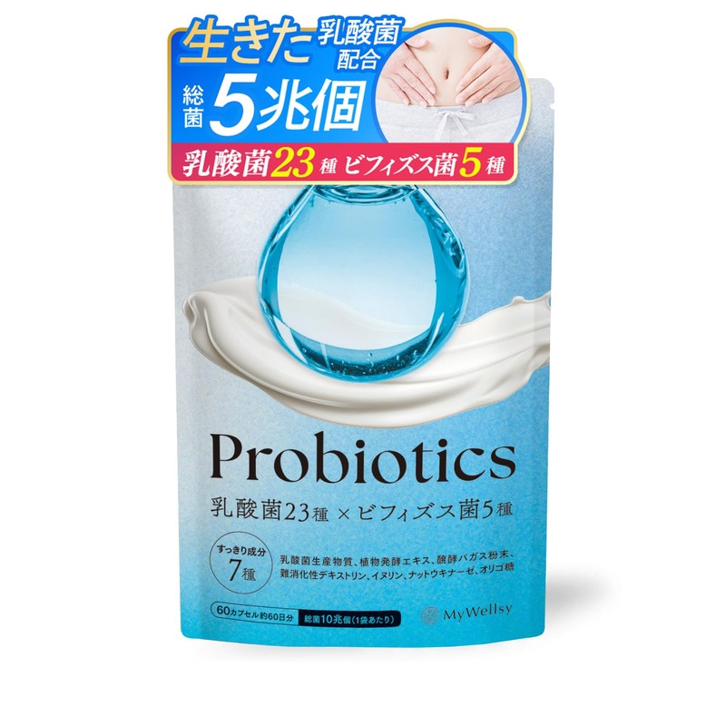 【生きた乳酸菌配合 薬剤師監修】MyWellsy 乳酸菌 ビフィズス菌サプリ 60日分 5兆個 菌活 オリゴ糖 イヌリン ナットウキナーゼ プロバイオティクス 国内GMP製造 マイウェルシー (60日分)