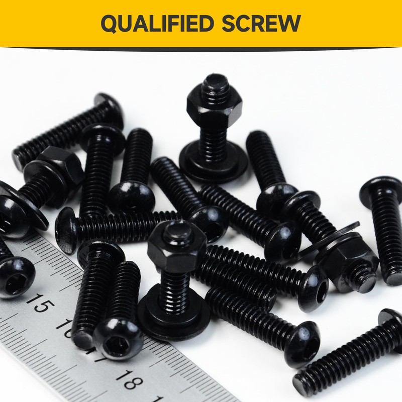 - WIDE RANGE OF APPLICATIONS - 20 pieces black bolts set. Stainless button socket head screws are suitable used as furniture screws (tv mount, beds, tables, cabinets, chairs, etc.), woodworking projects (joining wood, boards, workbench, kitchen worktops), office appliances, communication equipment, ship assembly, and various machinery industry needs.