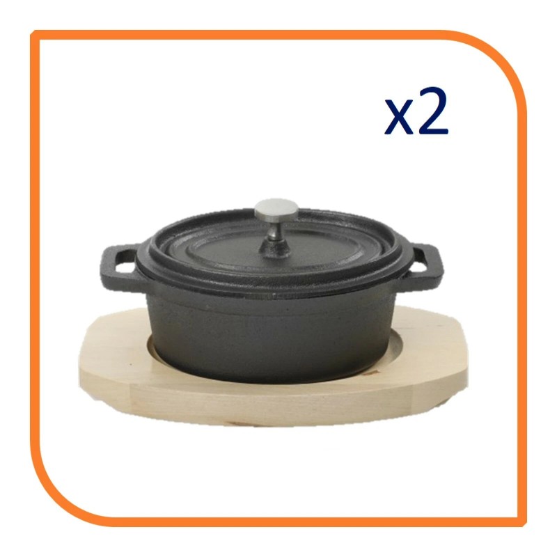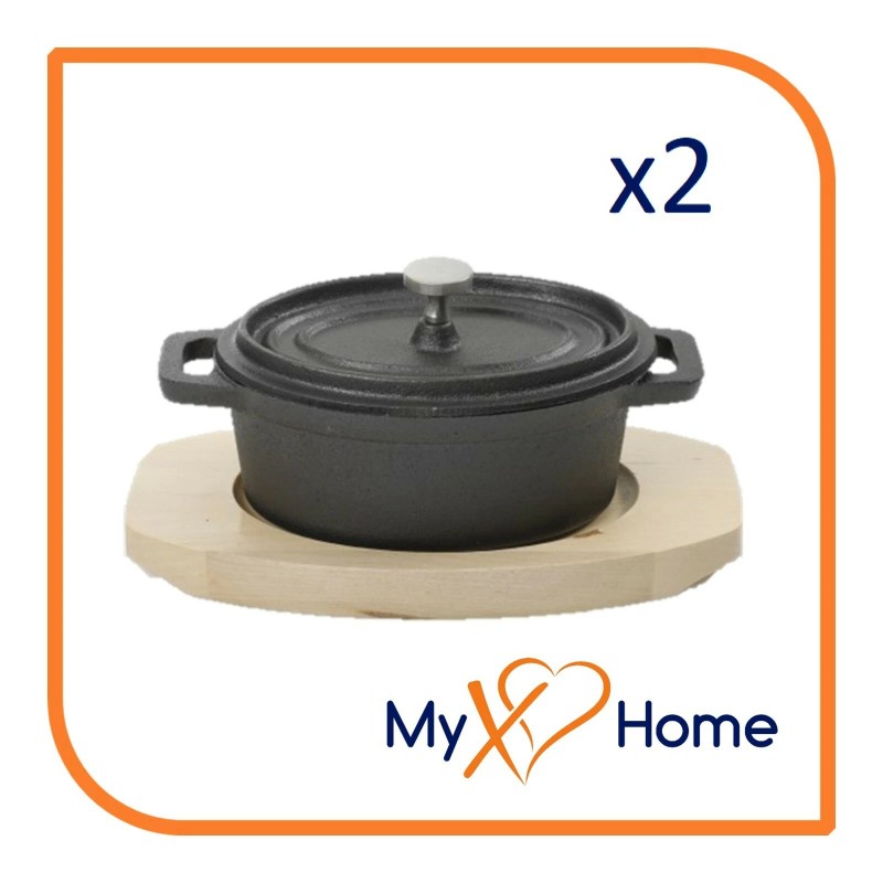 MyXOHome 0.35 Qt Oval Cast Iron w/Handles & Wooden Base (2 Casseroles) by MyX...