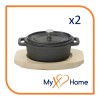 MyXOHome 0.35 Qt Oval Cast Iron w/Handles & Wooden Base (2 Casseroles) by MyXOHome