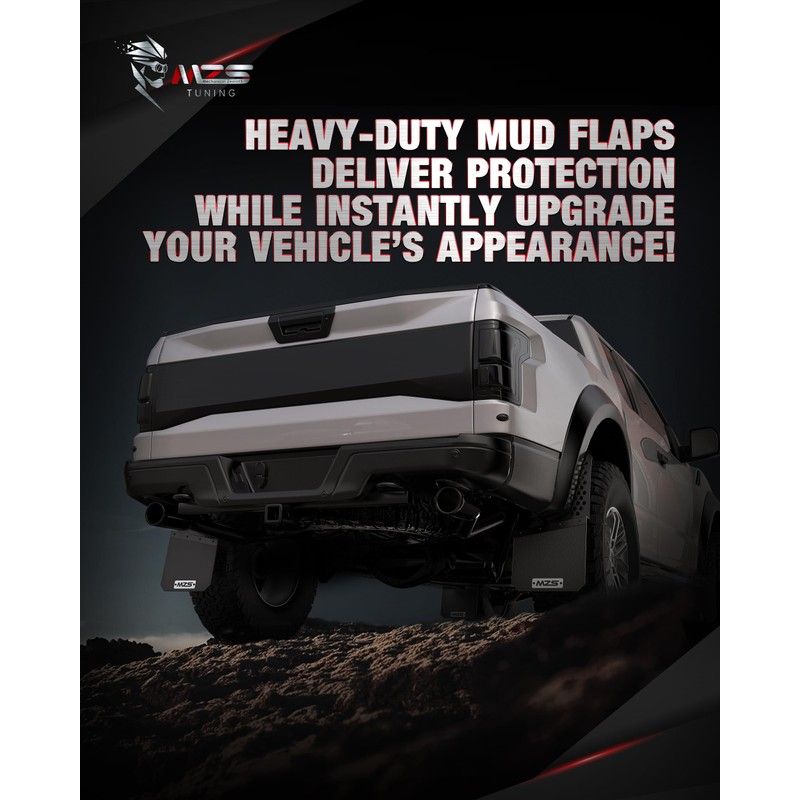 MZS Black Mud Flaps are carefully crafted from high-quality materials and withstand the harshest environments; This heavy duty and flexible mudguard provide effective coverage against road debris, mud, snow and dirt, perfect to provide protection for your vehicle. Mesh design make installation easier and can be mounted on most applications in minutes without the need for wheel/tire removal or drilling into the vehicles painted surface. Location: Front or Rear Other Product Name: mud flaps mud flaps for trucks truck mud flaps mud flaps for pickup trucks mud guard splash guard mudflap mudguard fender