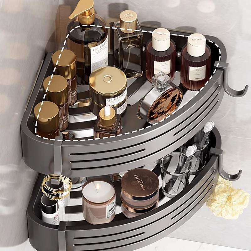 - Material: the corner shower caddy is made of high-quality aluminium. Rustproof, does not fade, scratch-resistant and durable. Selected from space aluminium, hard core to ensure a rust-proof, corrosion-resistant and practical, robust and not easily deformed, rounded corners, delicate to prevent scratching hands.