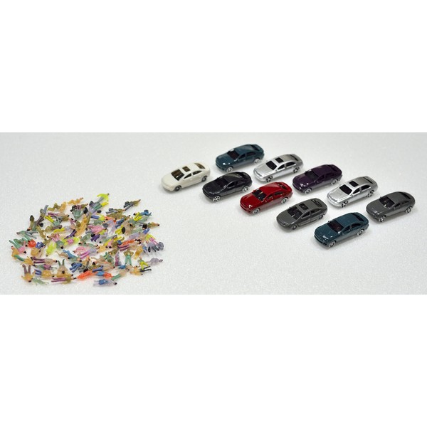 Nゲージ 人形 ミニカー ランダム セット (人形100体、ミニカー10台) 1/150 スケール ジオラマ 鉄道模型 建築模型等 にどうぞ
