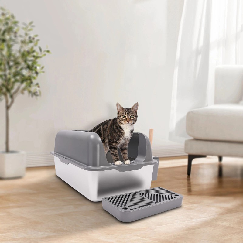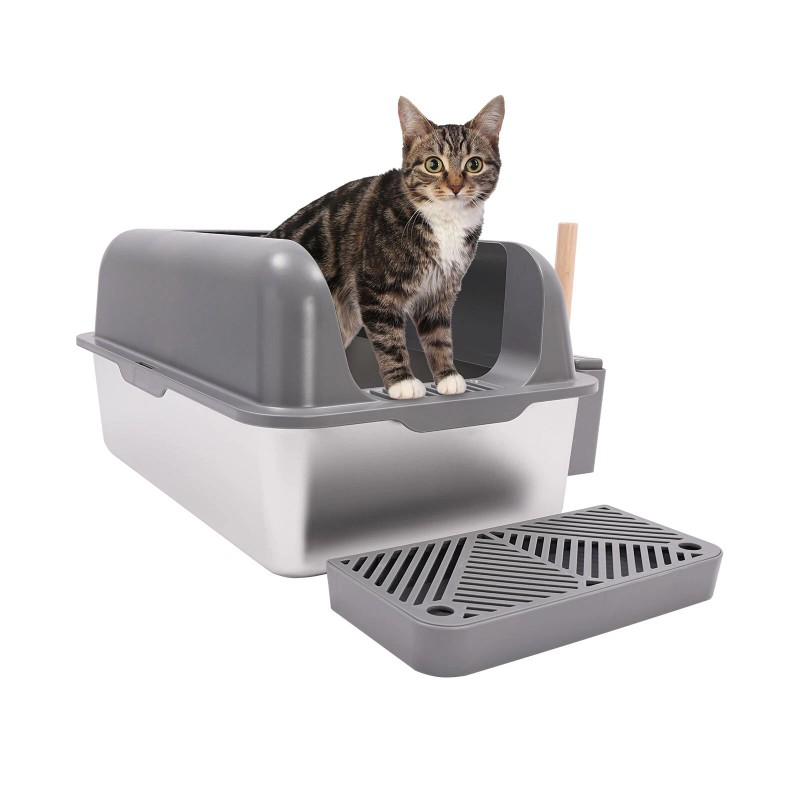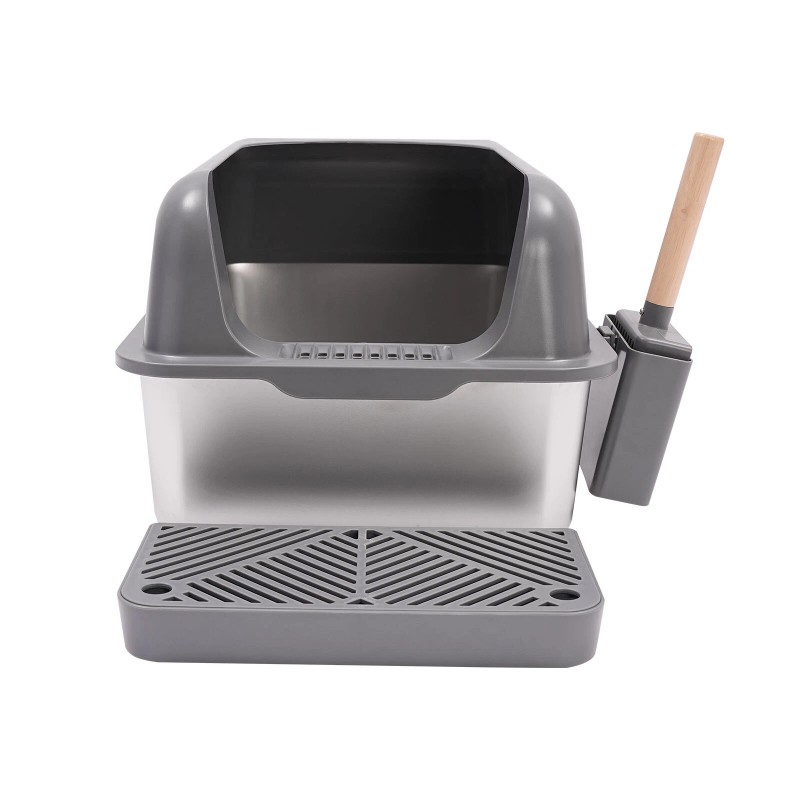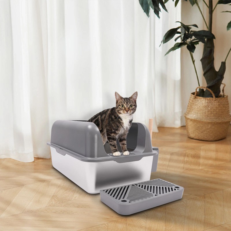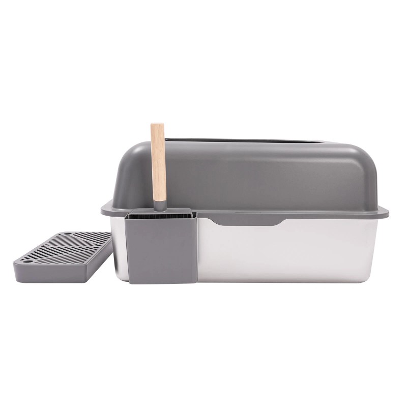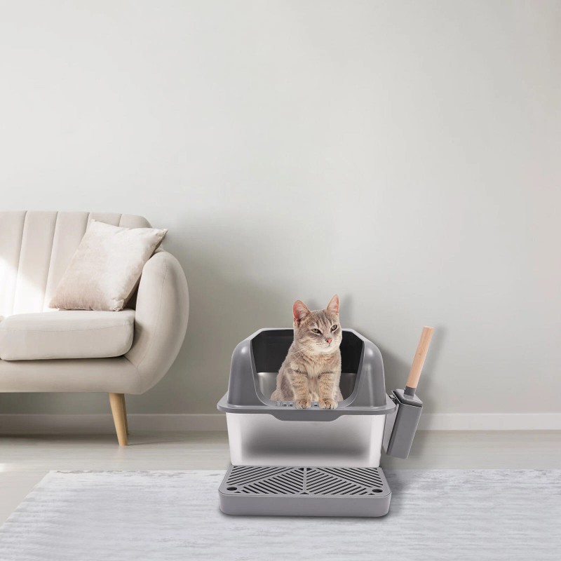 N/A 20L/5.28 Gallon Stainless Steel Cat Litter Box Floor-Mount Litter Case w/ Scoop
