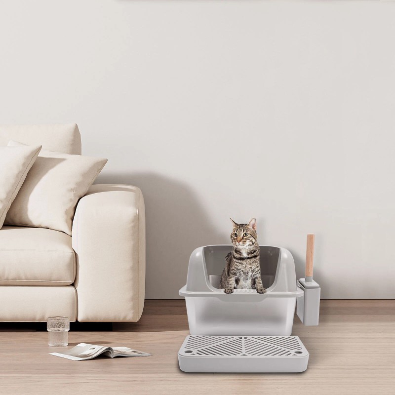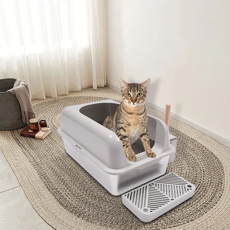 Semi-open Design: The large outlet above facilitates cats to enter and exit, reducing odors and bacterial growth caused by enclosed spaces, which helps maintain the hygiene and health of the cat's toilet environment.