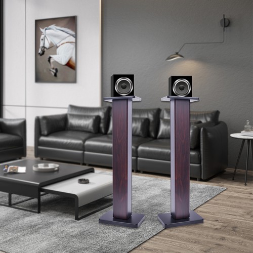 n/a 2x Walnut Wood Speaker Stands Home Theatre Bookshelf Surround Sound Support 90cm