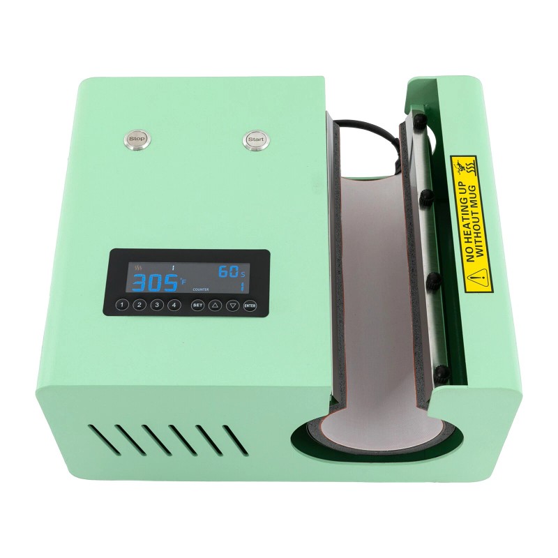 High Efficiency: The 500W high-power can quickly heat up to the temperature you set, and this machine can simultaneously print two 15OZ or 11OZ straight cups, improving work efficiency.