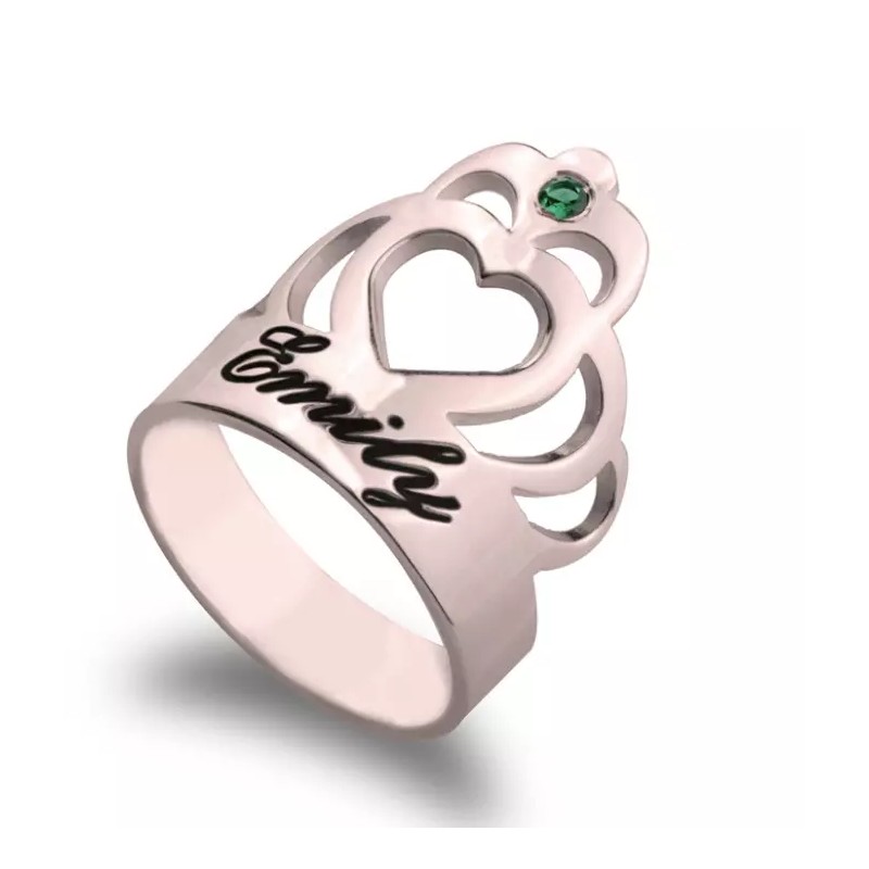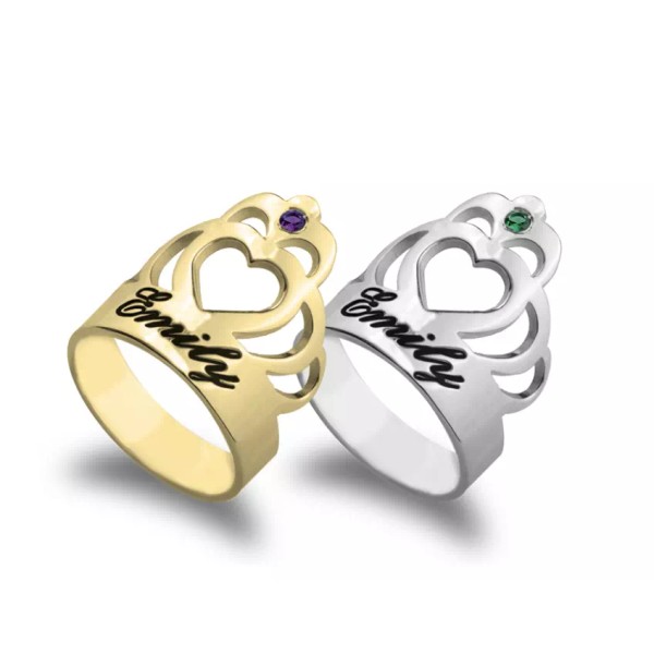 N/A CROWN NAME RING WITH BIRTHSTONE: STERLING SILVER, 24K GOLD, ROSE GOLD