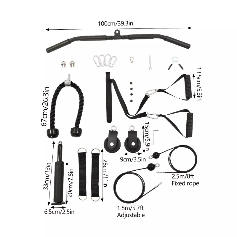 A proper workout can help you train muscle groups throughout your body, it also helps to promote total body balance and improve core strength, bringing you a healthy life. This pulley system gym is made of high-quality materials to ensure durability, and the user-friendly design adapts to your height, making it one of the ideal choices for home and gym workouts.
