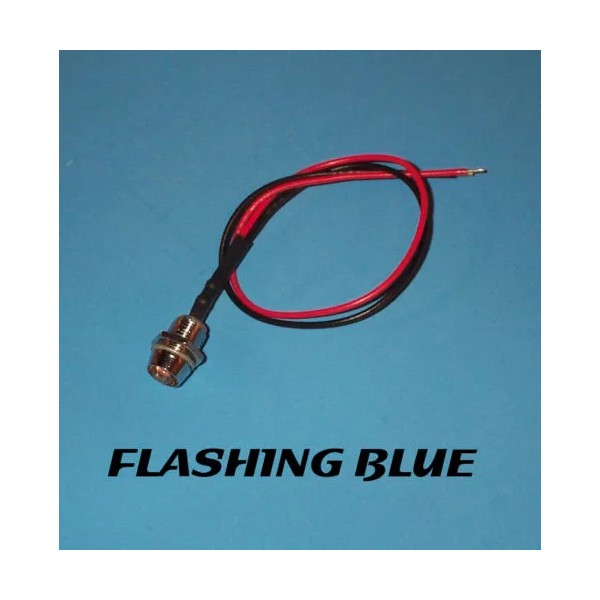 n/a FLASHING LED - 5mm PRE WIRED 12V CHROME BEZEL - BLUE PREWIRED 12 VOLT