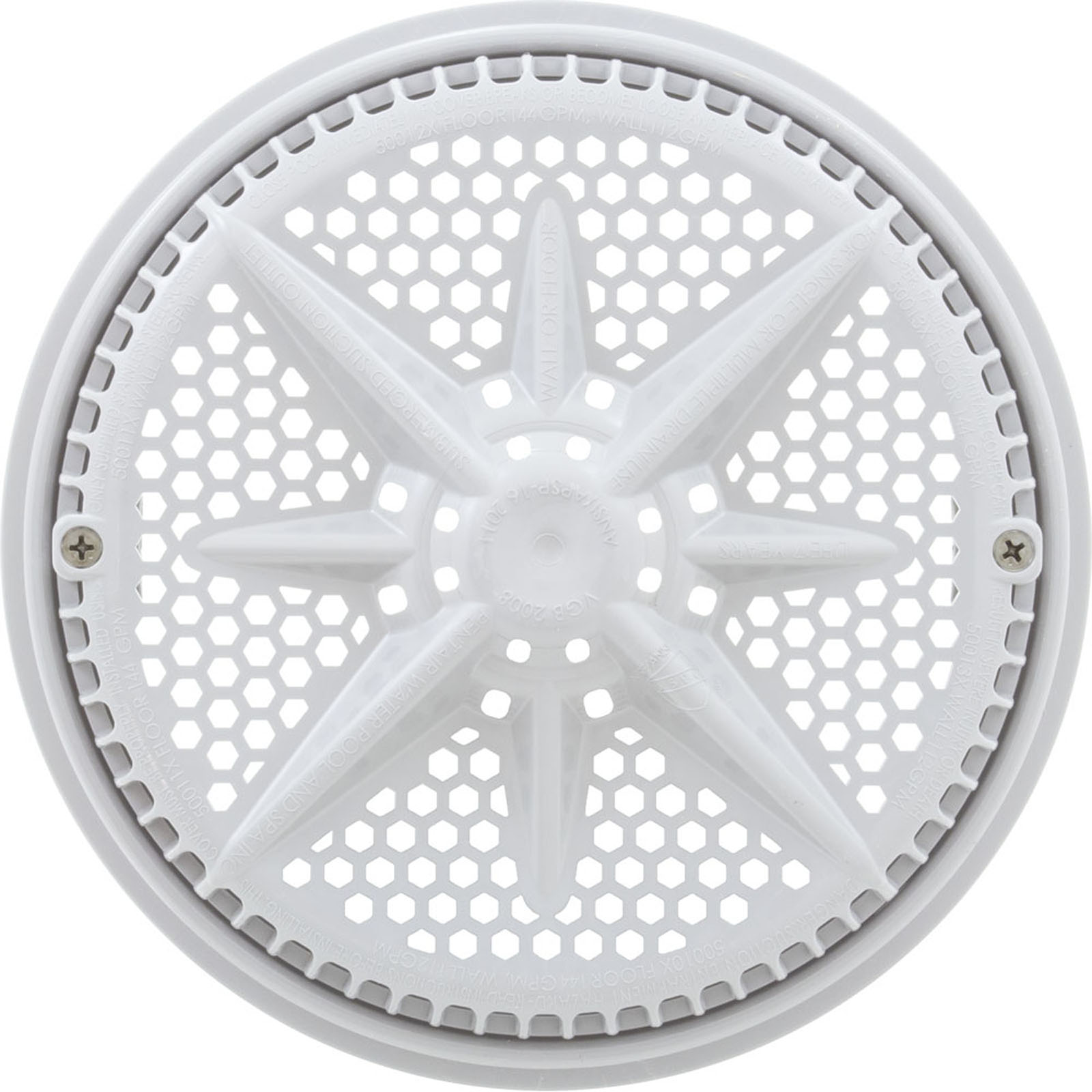 Main Drain Grate, PentStarGuard, 8", 112gpm, Wht, qty 2, Long Ring