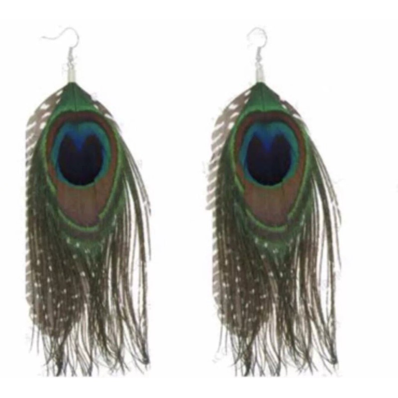 N/A Peacock Feather Dangling Earrings