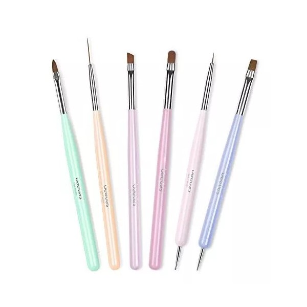 CALIDAD PREMIUM: Fabricado con fibra de calidad, sin deformación, sin corrosión. El cepillo de uñas de gel UV ensamblado con pegamento fuerte entre fibra y tubos de metal, que es duradero y no se puede desprender del cepillo para polvo a las uñas. DISFRUTA DEL BRICOLAJE: viene con 6 piezas de herramientas de diseño de uñas, ideales para dibujar exquisitos patrones pintados en 3D, cuadros y flores, etc. Puedes hacer todo tipo de diseños de uñas que te gusten solo en casa con estos sin la preocupación de gastar demasiado en la uña salón. FÁCIL DE MANEJAR: el cuerpo del bolígrafo es liviano y cómodo, fácil de sostener y pintar. Además, permanece en la parte metálica de manera constante, no te preocupes por que se salga. Haciendo tus uñas más hermosas y encantadoras. PAQUETE DE 6 PAQUETES: Los cepillos de uñas profesionales vienen con 6 bolígrafos de diseño de uñas diferentes. Incluye cepillo de gel para extensiones de uñas, cepillo de gel para constructores, bolígrafo para tallar uñas, cepillo para delineador de uñas y bolígrafo para puntear uñas. Te darán uñas hermosas en casa.