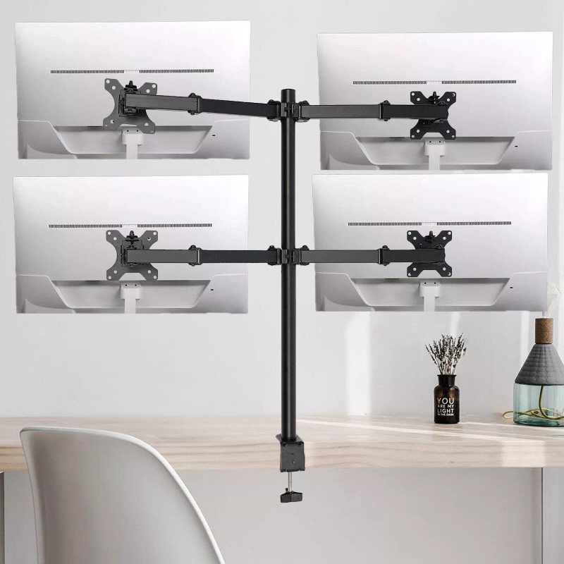 Are you still struggling with neck pain caused by long hours of computer-watching at work? Our display bracket can solve your troubles. The combination of high-quality material and exquisite craftsmanship makes it sturdy and durable. Its height and tilt angle can be adjusted, making it comfortable for you to work. It can install 4 displays and allows you to freely choose multiple screen combinations, allowing you to work efficiently. The powerful load-bearing capacity allows you to use it with confidence. Anyway, it's your office assistant!