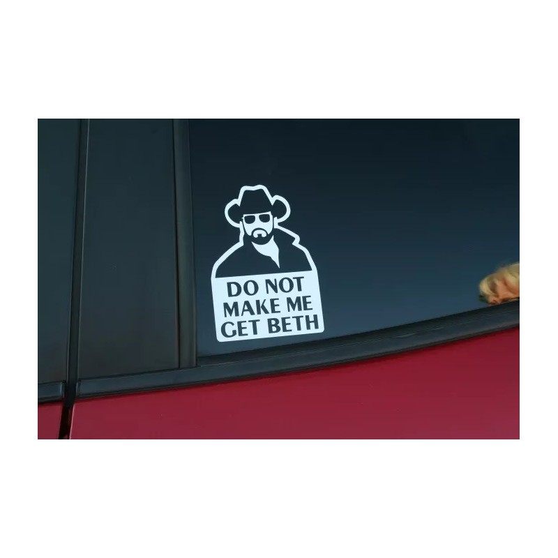 This auction is for one (1) Don't Make Me Get Beth die-cut vinyl sticker. Made from 6-10 year outdoor vinyl! Measures 3.5" x 5.5".