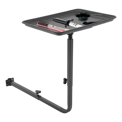 Our chair tray is made of high-quality aluminum through the painting process for durability. The 360° rotating bracket allows you to hold your hair styling tools with ease. The adjustable length and height of the bracket allows you to reach the ideal height for your work. The large capacity tray is convenient for holding your hair styling tools. Come and take it home!