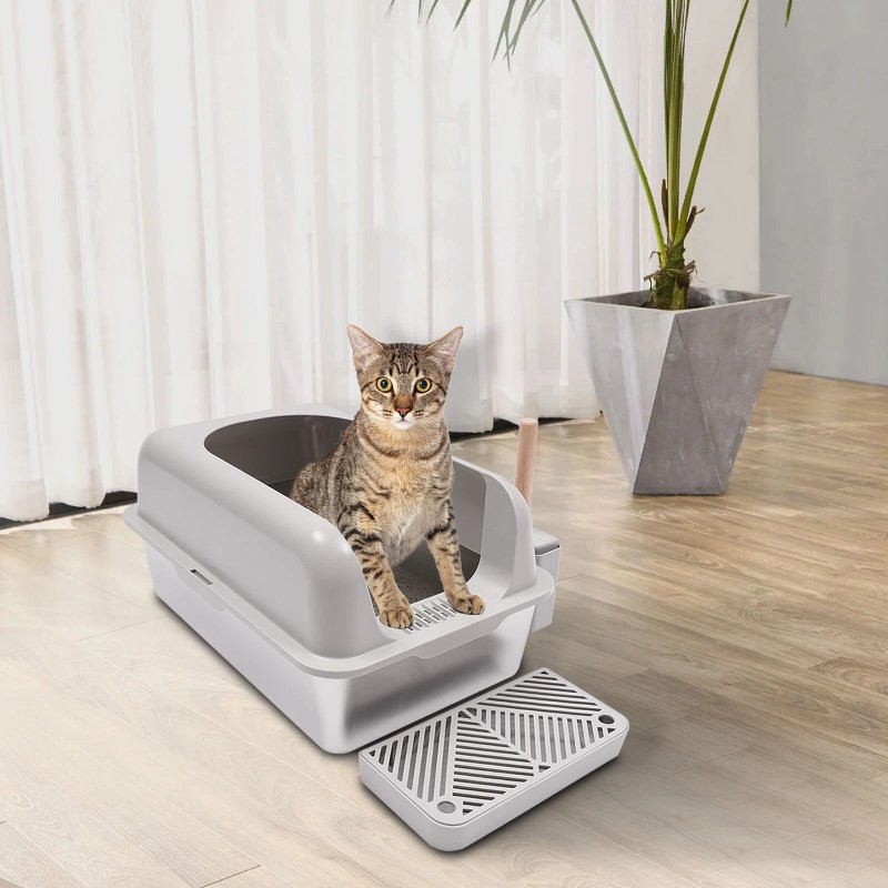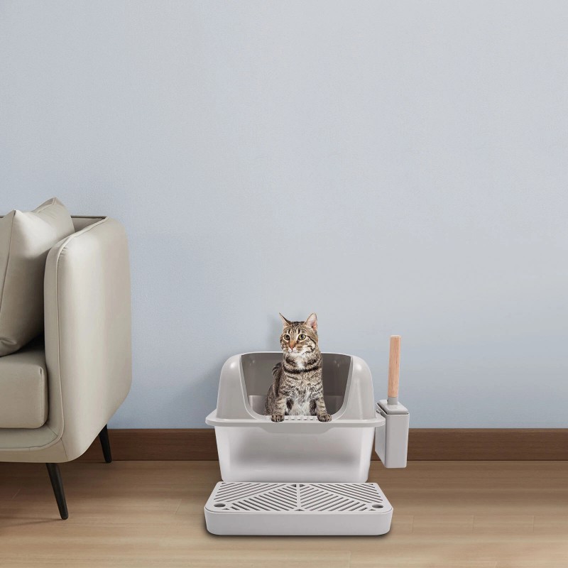 Semi-open Design: The large outlet above facilitates cats to enter and exit, reducing odors and bacterial growth caused by enclosed spaces, which helps maintain the hygiene and health of the cat's toilet environment.