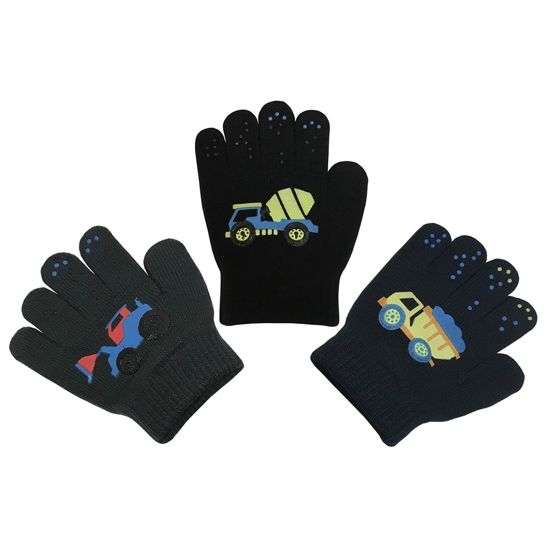 N'Ice Caps Kids Magic Stretch Gloves Mitten 3 Pairs Toddler Boys Girls Winter (Trucks - Navy/Charcoal/Black, 5-7 Years)