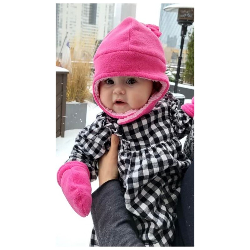- EASY TO PUT ON AND STAYS ON: The hat features a hook and loop chin strap that is easy to apply and allows for a secure fit on your child's head whether playing outside or bundled up in a stroller. The mittens are designed with elastic in the wrist area, which widens and allows for an easy-on fit. These accessory sets are great for active little kids who love playing around outside!