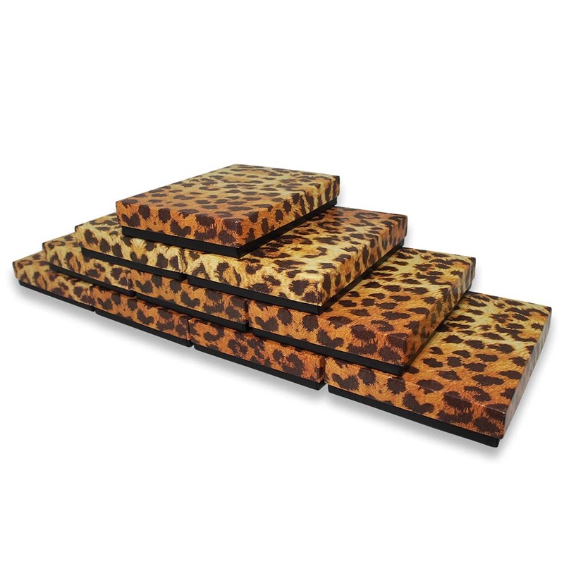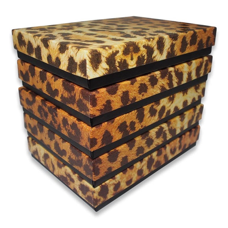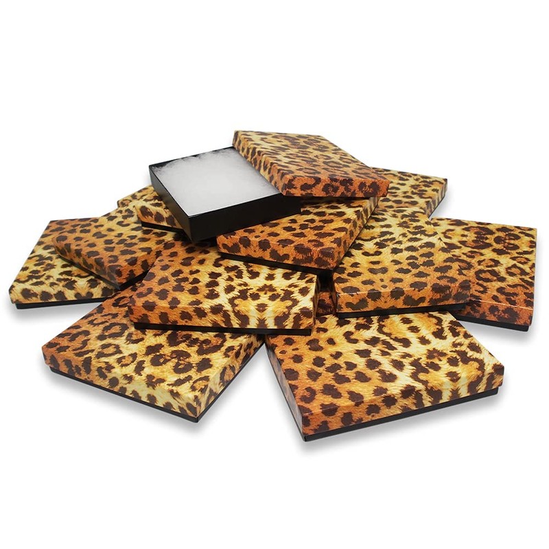 N'icePackaging 50 Qty - Cheetah-Leopard Print Cotton Filled Gift Boxes - Size 5 7/16" x 3 1/2" x 1" - USA Made - Holidays/Birthdays/Sales/Storage/Display/Travel