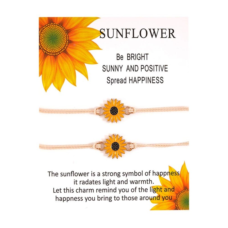 - Sunflower Bracelet:The sunflower is a strong symbol of happiness,it radiates light and warmth.Let this Sunflower Daisy Charm Bracelet remind you of the light and happiness you bring to those around you and brighten your life like the sun.
