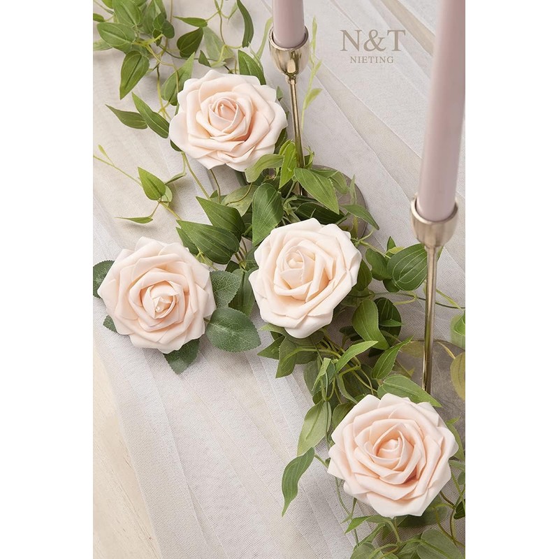 N&T NIETING Artificial Flowers, 25Pcs Fake Flowers Roses Perfect for DIY Wedding Bouquets Centerpieces Bridal Shower Party Home Flower Arrangement Decorations, Blush
