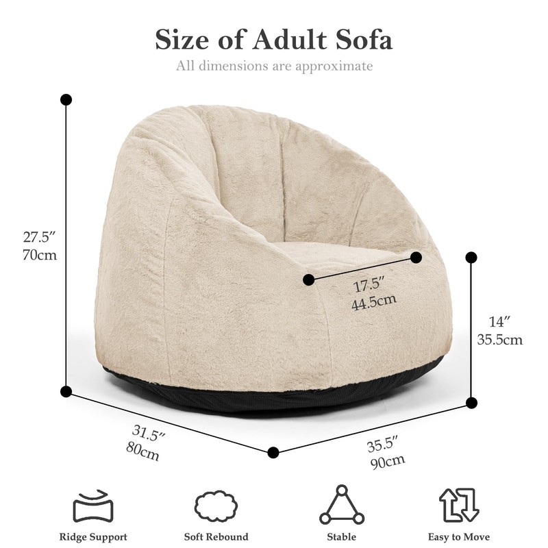 - Faux Fur Cover: The faux fur cover is super-soft to the touch and skin-friendly. This beautiful cover makes the chair an absolute focal point in any space. The ultimate fluffy touch and feel make you wanna lying in the sack 24/7.