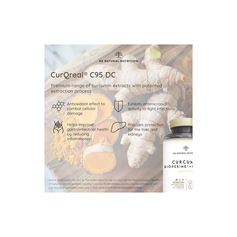 - HIGH CONCENTRATION OF CURCUMIN AND GINGER: N2 Natural Nutrition's Curcumin Biotics has a potent concentration of clinically backed, patented ingredients to support optimal overall wellness. Our curcumin capsules with black pepper and ginger will help you fight infections, relieve stomach discomfort and protect against illness, as well as help regulate your gut flora.