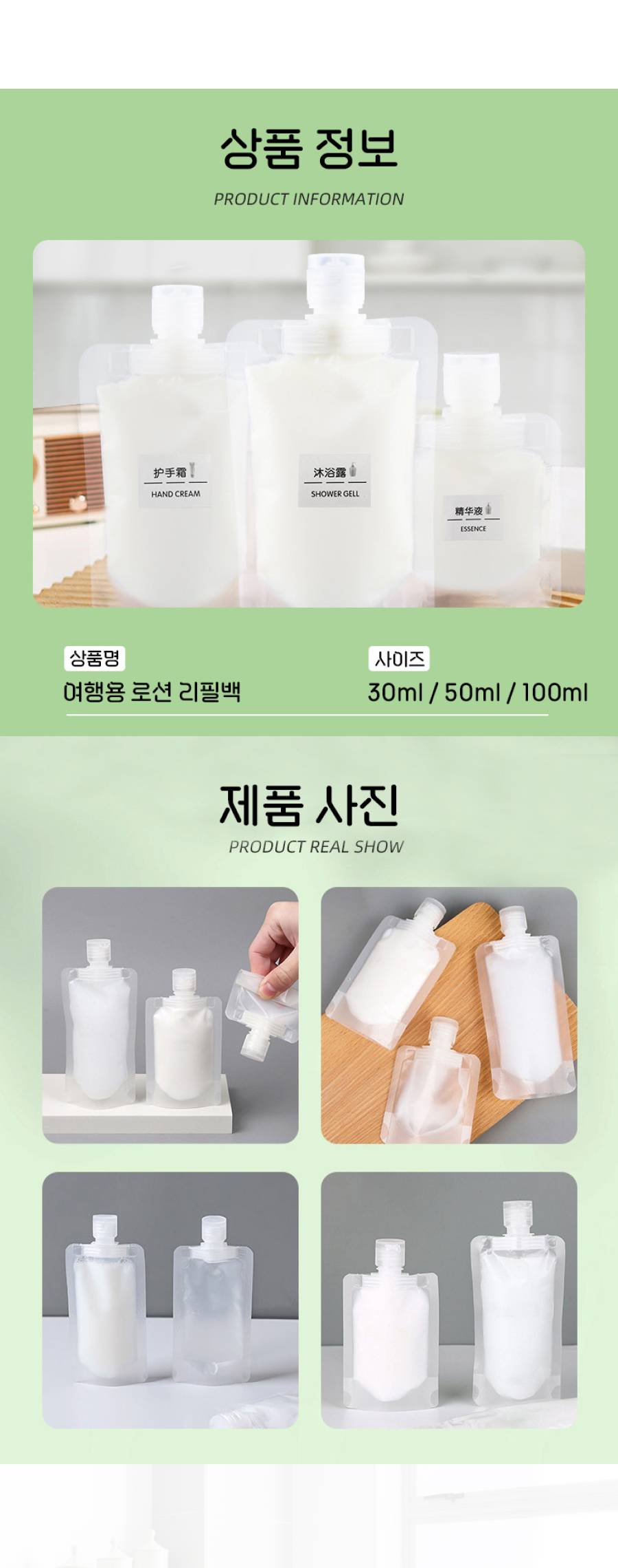 - Product Name and Model Name: Refill Bag Empty Bottle