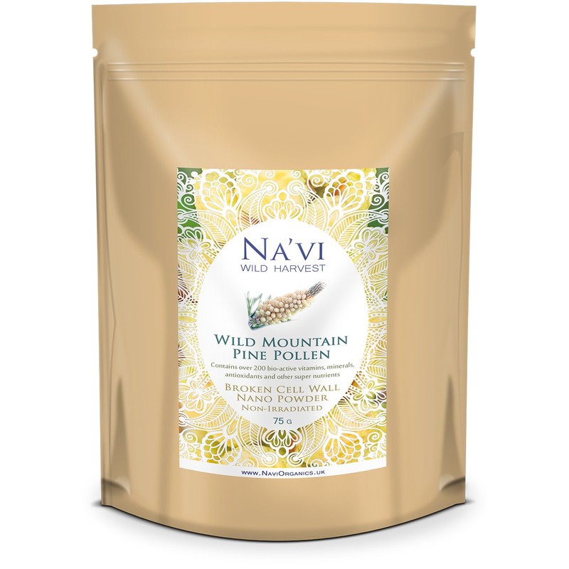 Product descriptionNa'vi Pine pollen is wild-harvested by hand in the mountains on northwestern part of the Yunnan province which borders Tibet. Carefully sourcing in this way allows us to ensure that we can offer a pure and potent wild product.Wild harvested pine pollen is a superfood with no added chemicals or preservatives. Each serving contains over 200 bioactive vitamins, minerals, antioxidants and other super nutrients including Vitamins A, B Complex, C, D2 and D3, E, over 18 amino acids, zinc, magnesium, enzymes and much more.Pine Pollen is the male spore of the pine tree and is considered to be one of the most potent and powerful herbs or foods available today. It has been used for thousands of years, and is mostly famous for its effects on the hormonal system. It is often used by men and women alike to balance the hormonal system and rejuvenate the body.Pine pollen has a hard shell on it, which if not broken, the nutrition that is found in pine pollen will not be as readily available to the body. Therefore our pine pollen is processed through a low temperature and high speed airflow sporoderm-breaking technology, leaving 99% of the pine pollen with the cell walls broken, with sizes of around 1 to 2 micrograms and thus bio-available to your body.In China, where pine pollen has been used for thousands of years, it is considered one of the beauty tonics for women. Yes, it can be used on your skin too. Several of its compounds support both elastin and collagen. And taken internally, with its wide variety of minerals, vitamins, amino acids, antioxidants and more it'll help support your health.IngredientsWild Harvested Pine Pollen (Pinus Massoniana Lamb)