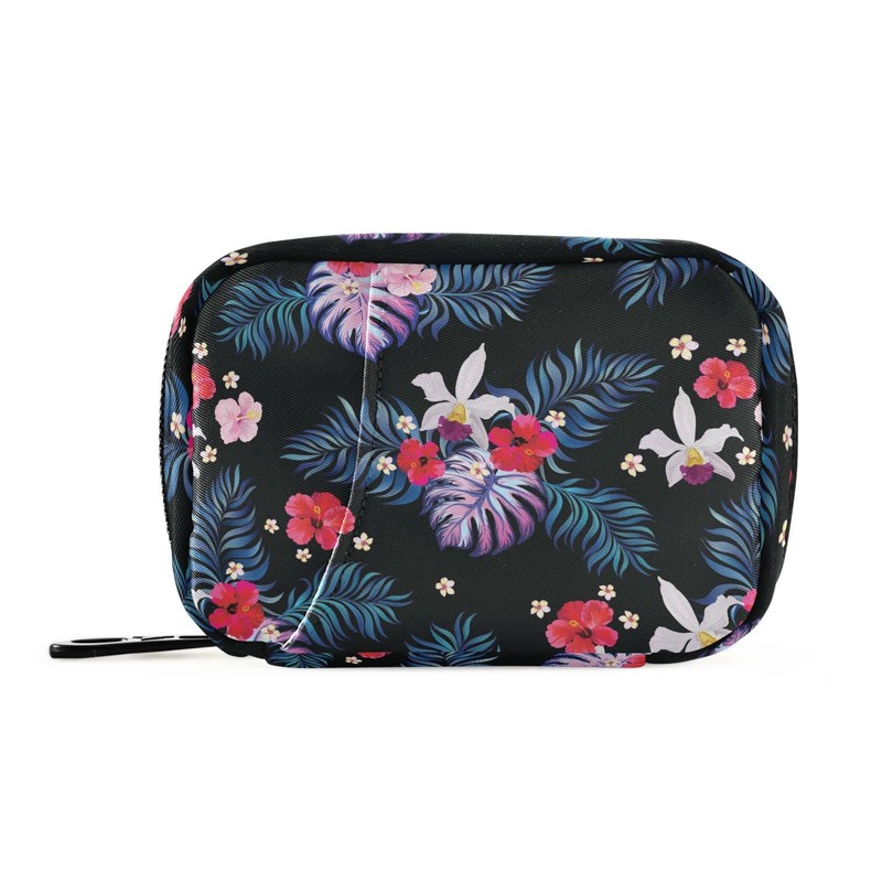 Naanle Pill Organizer Palm Leaves Flowers Pill Box 7 Day Pill Case Bag Travel Pill Organizer Bag with Zipper Portable Weekly Case Compact Size for Vitamin Supplement Holder