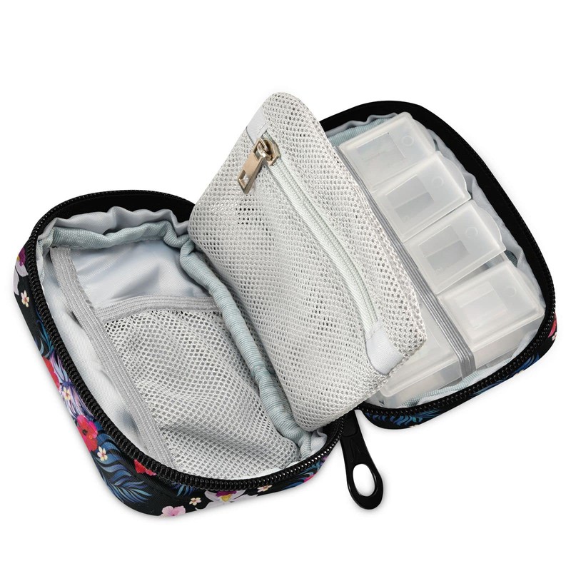 - Functional - Inner zipper net pocket can store more different pills, 1 surface insert pocket can put a key or card. Hook & Loop on the pill case bag back which can be easily hung on your backpack strap.