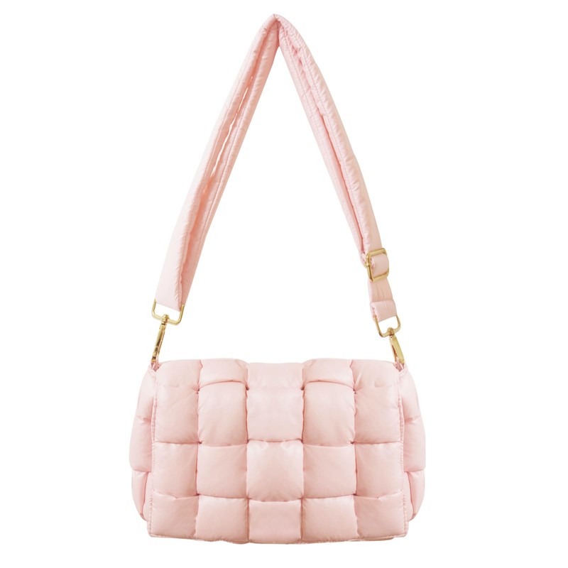 NAARIIAN Puffer Woven Bag Crossbody Purse for Women Padded Cassette Shoulder Bags Trendy Handbags Messenger(Pink)