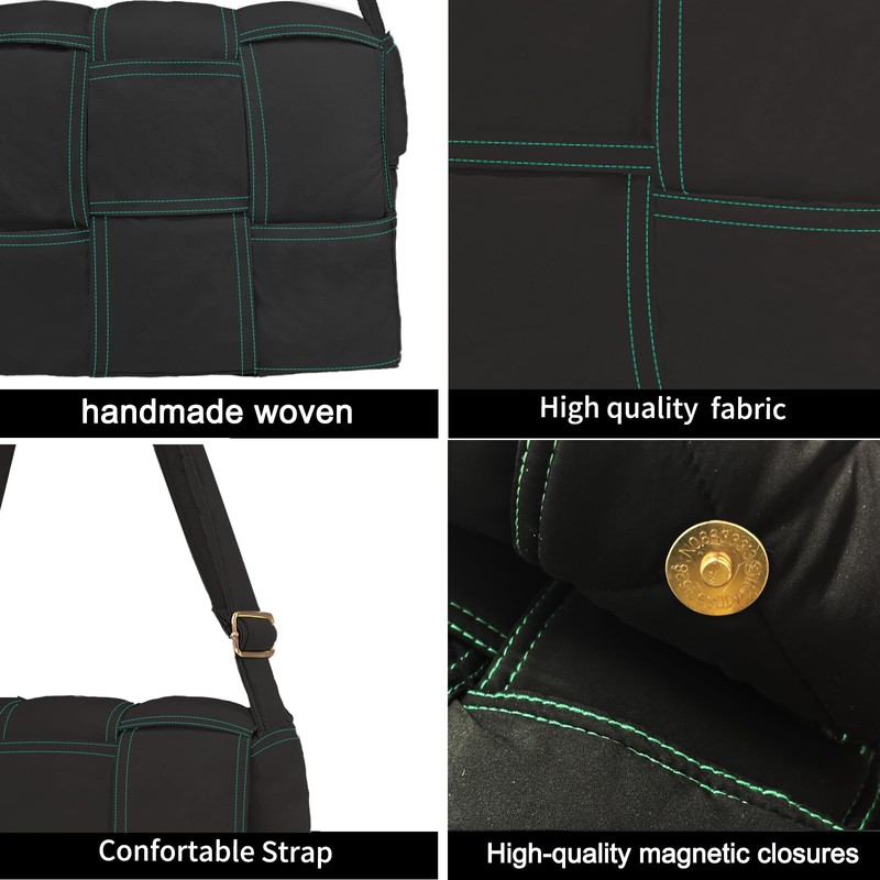 NAARIIAN puffer woven shoulder bag padded cassette handbag with coins organizer nylon light weight women crossbody purse, Black Y, Medium