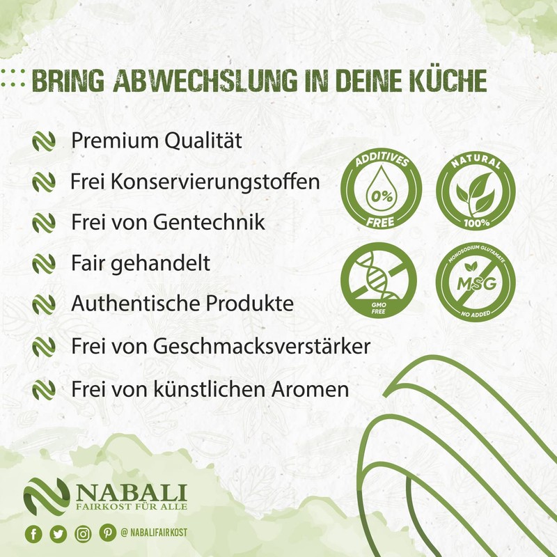 - Middle Eastern Flavors Experience the rich and diverse flavor of the Middle East with NABALI FAIRKOST FÜR ALLE premium Zaatar, Dukkah and Sumac seasonings prepared to perfection.