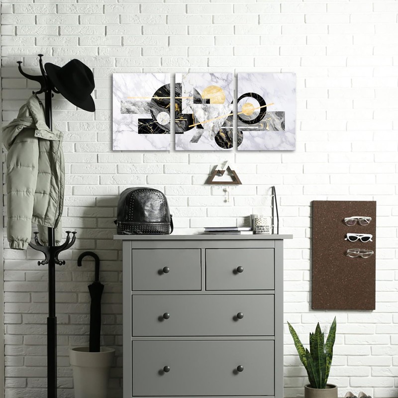 Nachic Wall Black Grey and Gold Wall Decor Abstract Geometric Painting Canvas Prints Modern Luxury Marble Wall Pictures for Kitchen Bedroom (Black)
